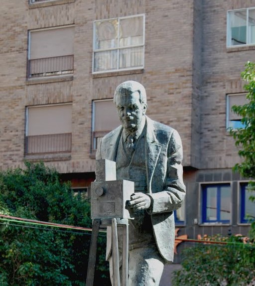 Con motivo de la celebración del que se dijo fue el centenario de tal efeméride, en 1996 se realizó una recreación de época sobre el mismo, y se encargó la realización de una escultura para conmemorarla. Se terminó por encargarla al escultor Manuel Arcón, quien realizó una escultura a cuerpo entero de Eduardo Jimeno con su máquina Lumière. Curiosamente, por aquél entonces los descendientes todavía conservaban la máquina y el escultor pudo tomar las medidas y la formología de esta. Así pues, la reproducción que hoy podemos contemplar situada en la plaza de Ariño junto a la calle don Jaime es exactamente igual a la máquina, tanto en forma como en tamaño, a la que hace más de un siglo se usó para rodar una de las obras más antiguas del cine.