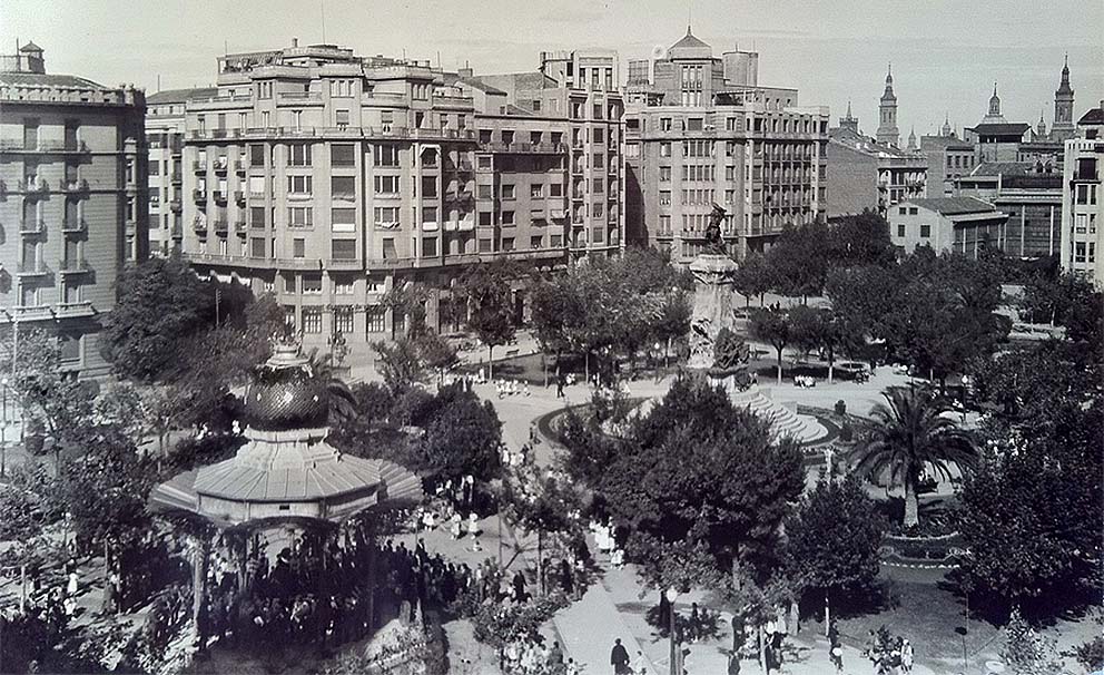 La Expo de 1908 tuvo un gran impacto en muchos sentidos en esa Zaragoza en pleno crecimiento. Hasta entonces, la ciudad apenas había crecido en cuanto a extensión. Sí que lo había hecho en población, pero los Sitios habían dejado numerosos solares vacíos debido a la ruina de muchos de los conventos que había en su interior, por lo que durante casi un siglo no hubo necesidad de que se construyeran nuevos barrios. Pero a estas alturas de la historia, Zaragoza se estaba quedando ya muy constreñida, por lo que este evento se planteó también como una forma de crear el primer gran ensanche moderno de la ciudad. Este comprendió toda la zona conocida como la huerta de Santa Engracia, que antes ocupaba ese gran monasterio del que hoy en día solo nos queda la iglesia. Iría desde el actual Paseo de la Independencia hasta llegar a la misma ribera del río Huerva. En la planificación de este nuevo “barrio” se siguieron las pautas del plan Cerdá, diseñadas por el ingeniero Ildefonso Cerdá para acometer el gran ensanche que se realizó en Barcelona apenas unas décadas antes. Si os fijáis al pasear por esas calles, tienen el mismo plano, con calles rectilíneas y con chaflanes en las intersecciones para mejorar la visibilidad, aunque a una escala muchísimo más reducida.