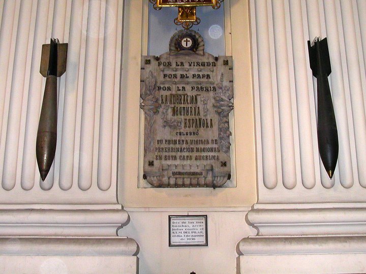 El 3 de agosto de 1936 fue bombardeada la Basílica del Pilar de Zaragoza durante la Guerra Civil española, aunque felizmente no explotó ninguno de los proyectiles lanzados contra ella. La historia oficial que contó el franquismo durante cuarenta años y que ha trascendido fue que aquél caluroso 3 de agosto de 1936 la aviación republicana quiso dar un golpe contra la moral de los sublevados que se habían rebelado contra el gobierno de la segunda república. Pero gracias a un milagro provocado por la intercesión de la Virgen de Pilar ninguno de los artefactos explotó, causando unos leves daños con respecto a lo que podría haber pasado.
