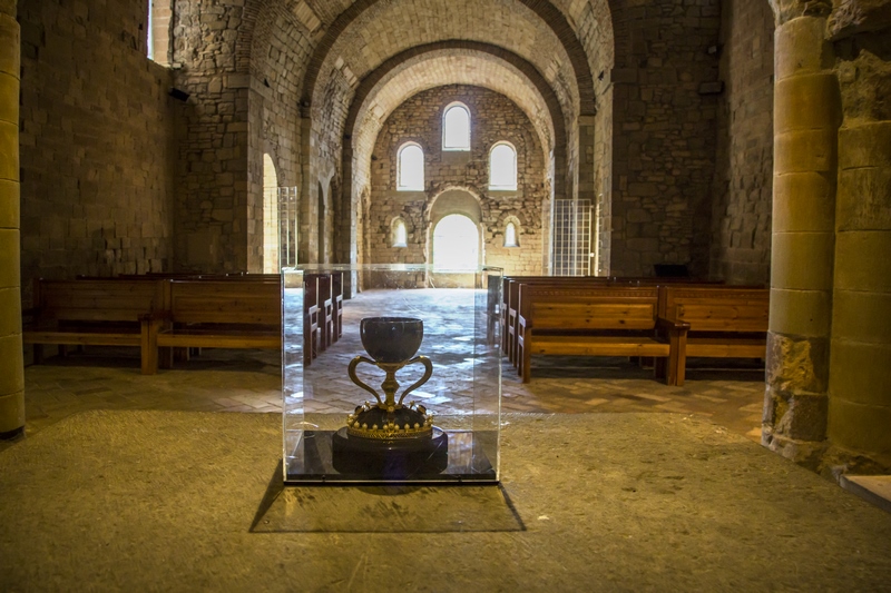 Ante la llegada de los musulmanes en el siglo VIII, el obispo de Huesca Acisclo decidió huir a las montañas, llevando consigo el Santo Grial a Yebra de Basa. Desde allí, la reliquia pasó al monasterio de San Pedro de Siresa y de ahí al monasterio de San Juan de la Peña, hasta que el rey Martín el Humano la trasladó en el año 1399 al palacio de la Ajafería de Zaragoza y años más tarde a Barcelona.