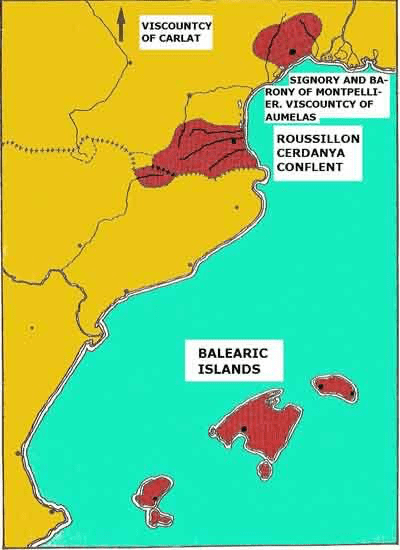 Pero, aunque lograron éxitos importantes en la conquista de la isla de Mallorca, finalmente la abandonaron y volvieron a dejarla en manos islámicas. Así hasta que ya en el siglo XIII ese proyecto fue retomado en tiempos de la Corona de Aragón con Jaime I el Conquistador a la cabeza. La conquista de Mallorca se realizó entre los años 1229 y 1231, siendo también sometidas Ibiza y Formentera mientras que Menorca quedó como un sultanato títere y vasallo de la Casa de Aragón hasta que décadas más tarde, ya con Alfonso III el Liberal en el trono, se acometió su conquista militar definitiva en el año 1287. Pero estos nuevos dominios no fueron incorporador al condado de Barcelona como muchos esperaban, y Jaime I creó un nuevo reino con sus propias instituciones y que comprendía no sólo las islas sino también algunos territorios que todavía pertenecían a los Aragón en Occitania, al norte de los Pirineos. A su muerte en el año 1276, Jaime dividió sus posesiones entre dos de sus hijos, dejando los dominios peninsulares de la Corona de Aragón a Pedro III el Grande mientras que el reino mallorquín quedó desgajado de esta y en manos de Jaime II de Mallorca.